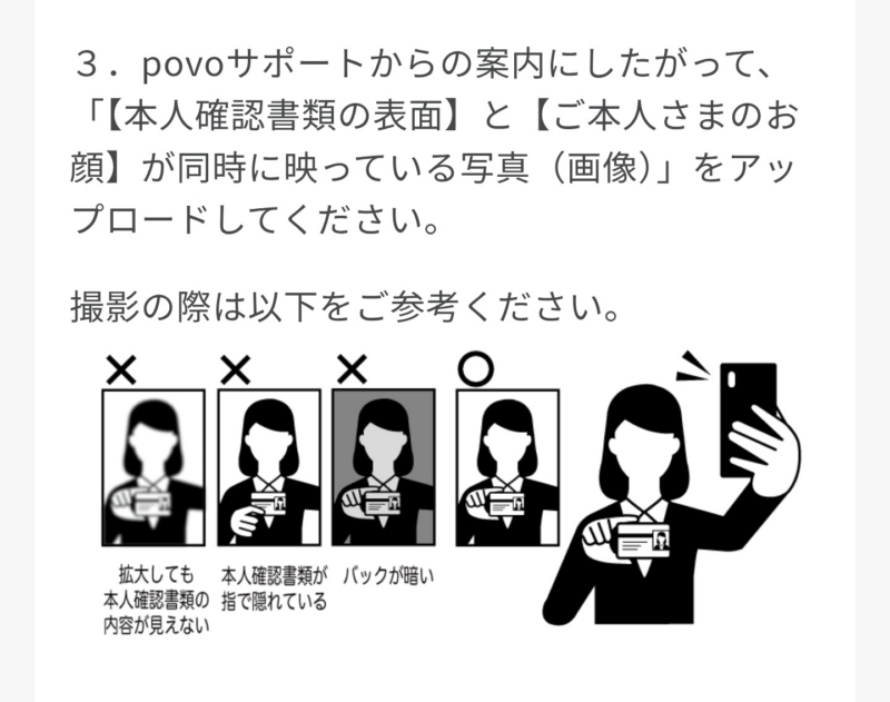 海外ローミング設定の本人確認は、以下のFAQにある写真の撮り方と同じでしたので参考にしてください。